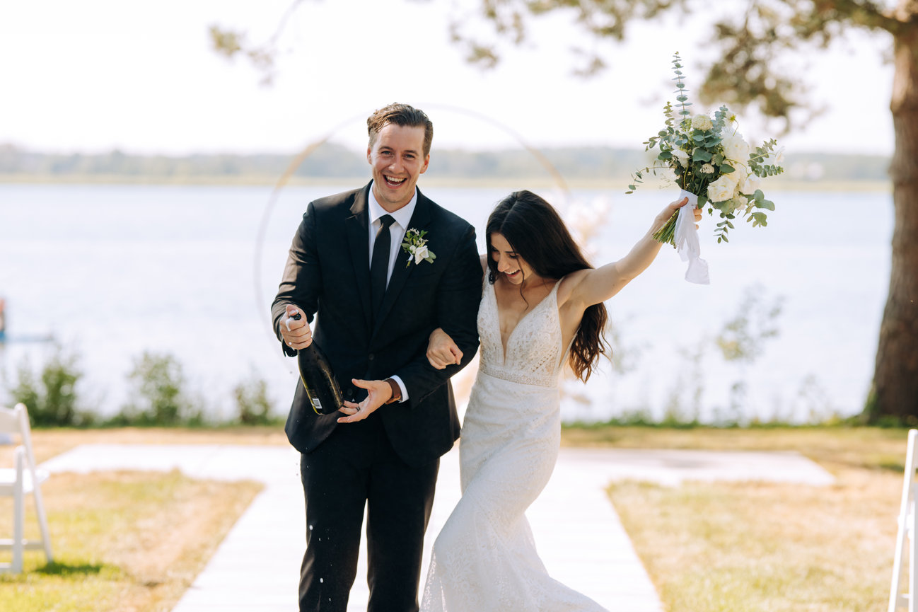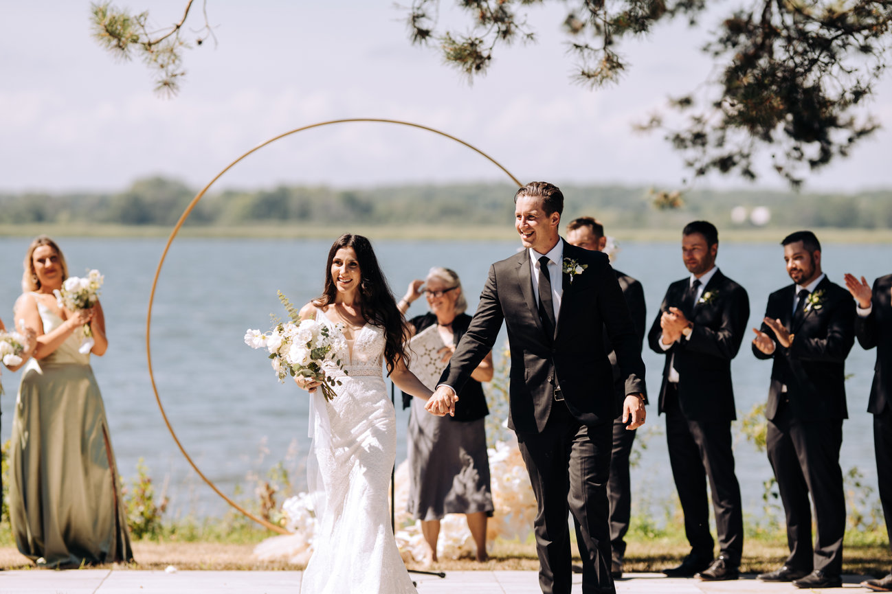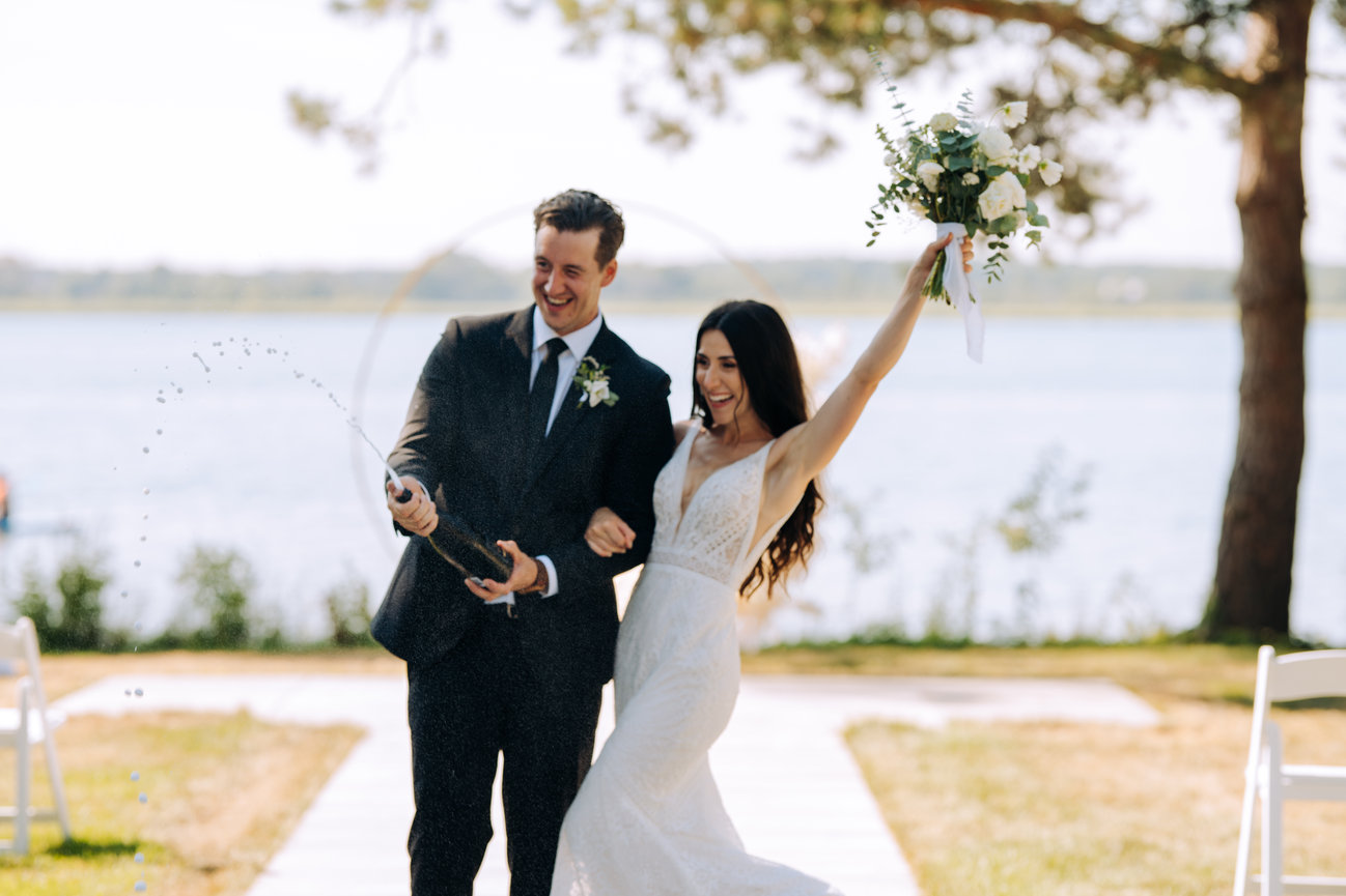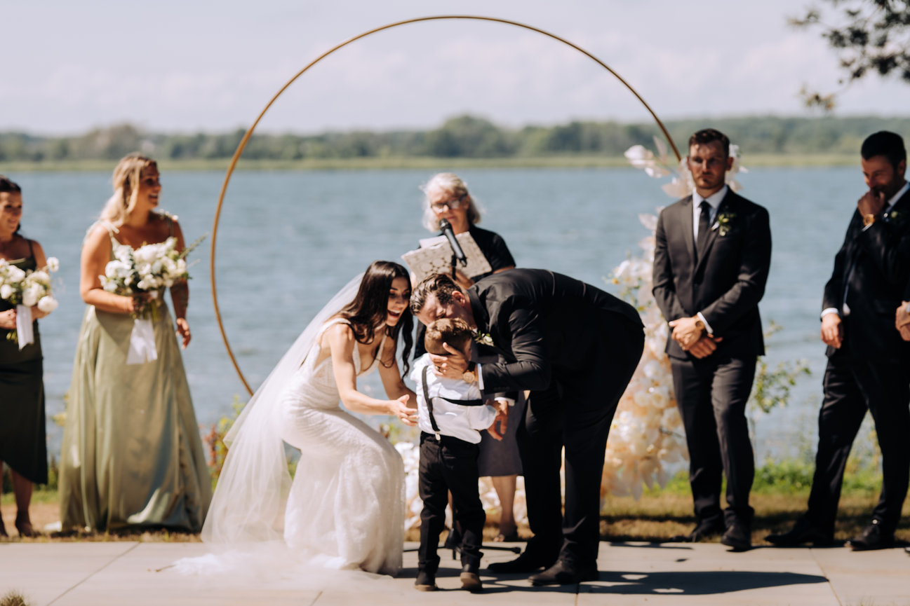 Set aside the shorelines of Prince Edward county, the guests here enjoyed a bubbly by the shore with the waves crashing as a perfect soundtrack to the days events. With family and friends staying at this beach front wedding resort they were able to enjoy a laid back weekend with the couple before the actual day of events began. Offering this couple extra time to enjoy with family and friends. To avoid the rush and enjoy time on the fastest day of your life is truly something rare. Here, things seem to have a wonderful timing. The dock on the water, the quaint little cottage with charcuterie and champagne or perhaps the boho wedding tipi that overlooks the sunset. These vibes here are laid back and relaxed. This place puts a mind at ease and allows guests and couples to really enjoy. With so many opportunities for stunning wedding photography any of these would make you want to stop for a moment and snapshot such a beautiful view not just the wedding photographer. For couples, guests and vendors, Lakecroft is a fantastic wedding venue choice, especially in the sought after Prince Edward County ! This couple and their family knew just how to celebrate with warmth and laughter and so much love!