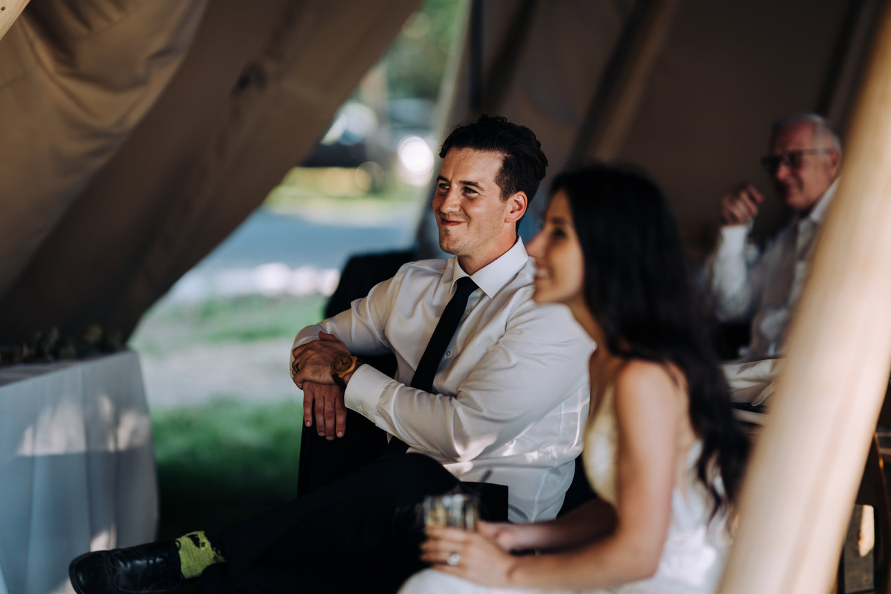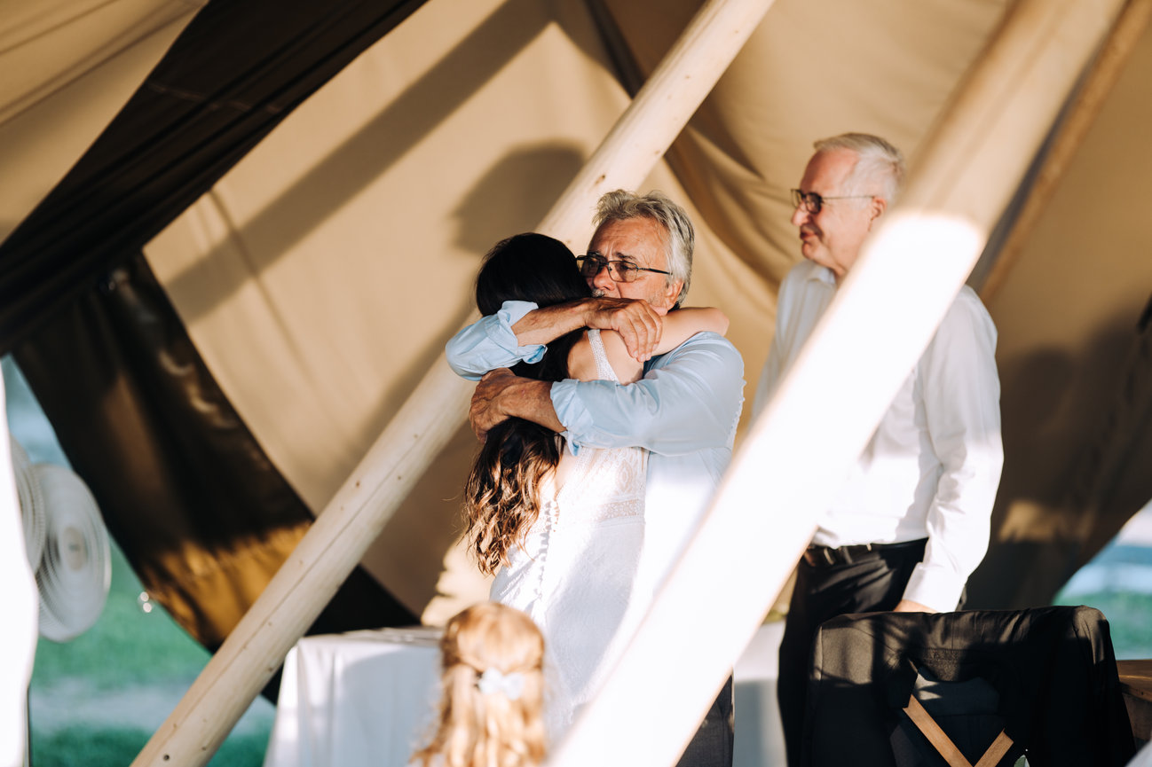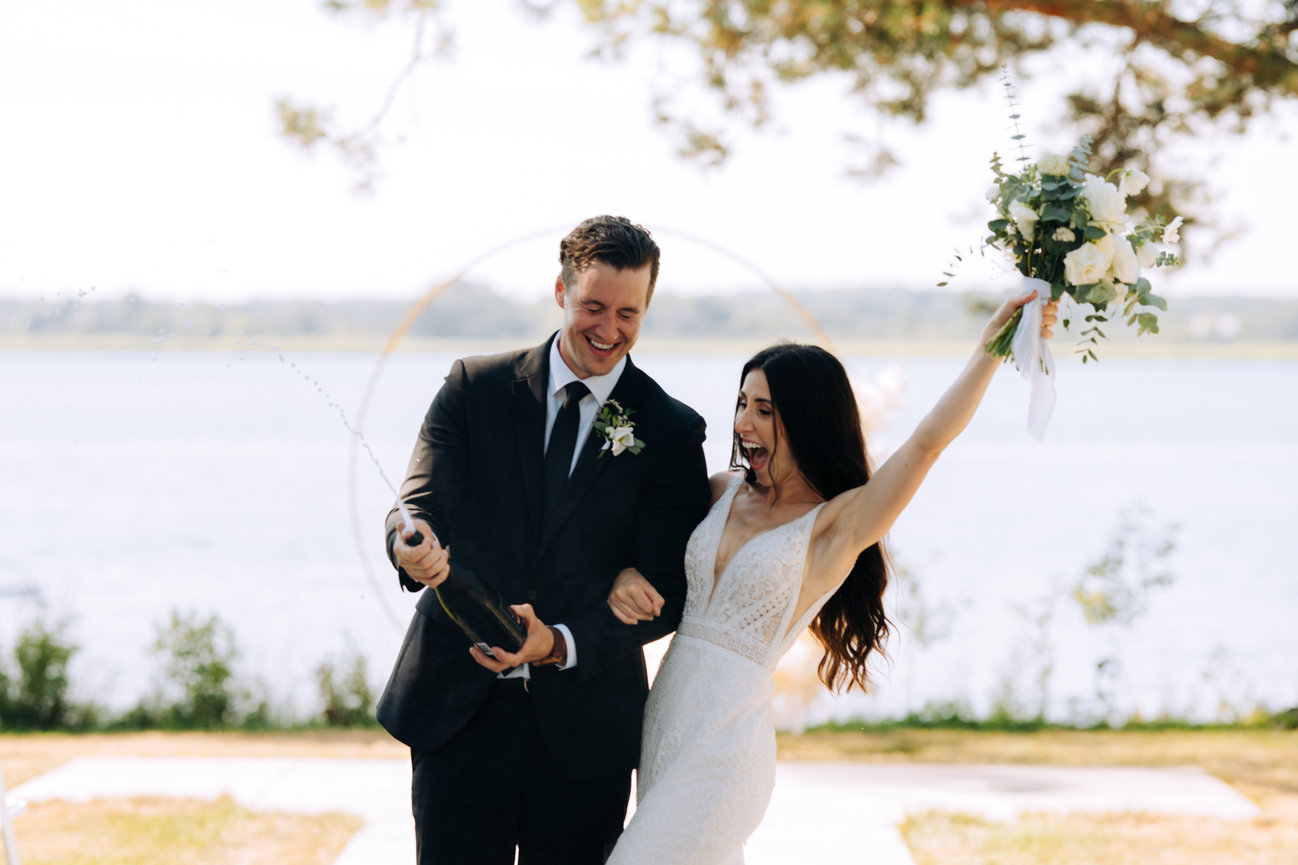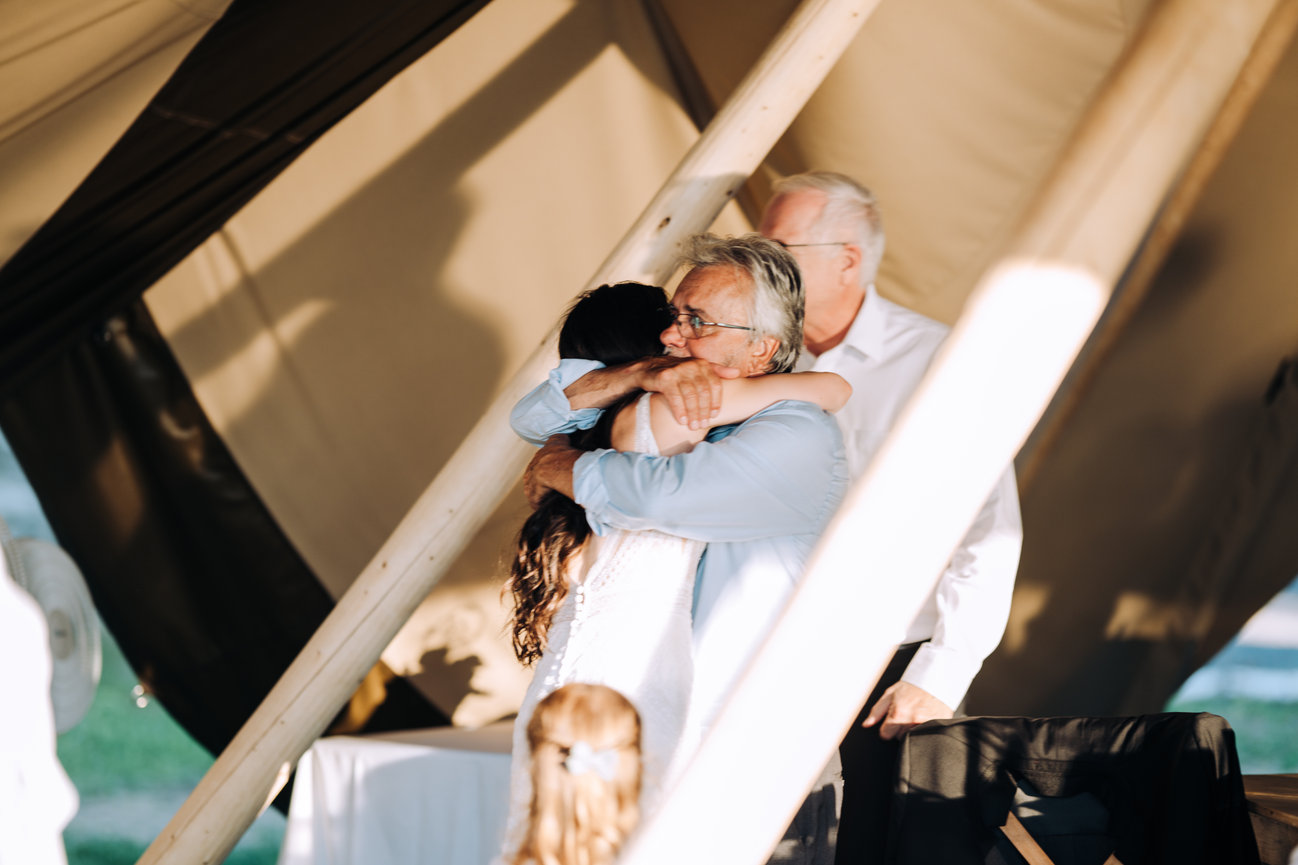 Set aside the shorelines of Prince Edward county, the guests here enjoyed a bubbly by the shore with the waves crashing as a perfect soundtrack to the days events. With family and friends staying at this beach front wedding resort they were able to enjoy a laid back weekend with the couple before the actual day of events began. Offering this couple extra time to enjoy with family and friends. To avoid the rush and enjoy time on the fastest day of your life is truly something rare. Here, things seem to have a wonderful timing. The dock on the water, the quaint little cottage with charcuterie and champagne or perhaps the boho wedding tipi that overlooks the sunset. These vibes here are laid back and relaxed. This place puts a mind at ease and allows guests and couples to really enjoy. With so many opportunities for stunning wedding photography any of these would make you want to stop for a moment and snapshot such a beautiful view not just the wedding photographer. For couples, guests and vendors, Lakecroft is a fantastic wedding venue choice, especially in the sought after Prince Edward County ! This couple and their family knew just how to celebrate with warmth and laughter and so much love!