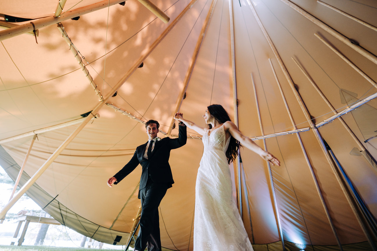 An intimate celebration for these two at the Lakecroft wedding venue in Prince Edward county. Here you will find stunning sunsets and beautiful views. This newly established lakefront glamping experience on the shores of lake Ontario is absolutely wedding beach dreams and so was this couple. When it comes to county weddings, this bride and groom made the most of their boho beach wedding at Lakecroft.