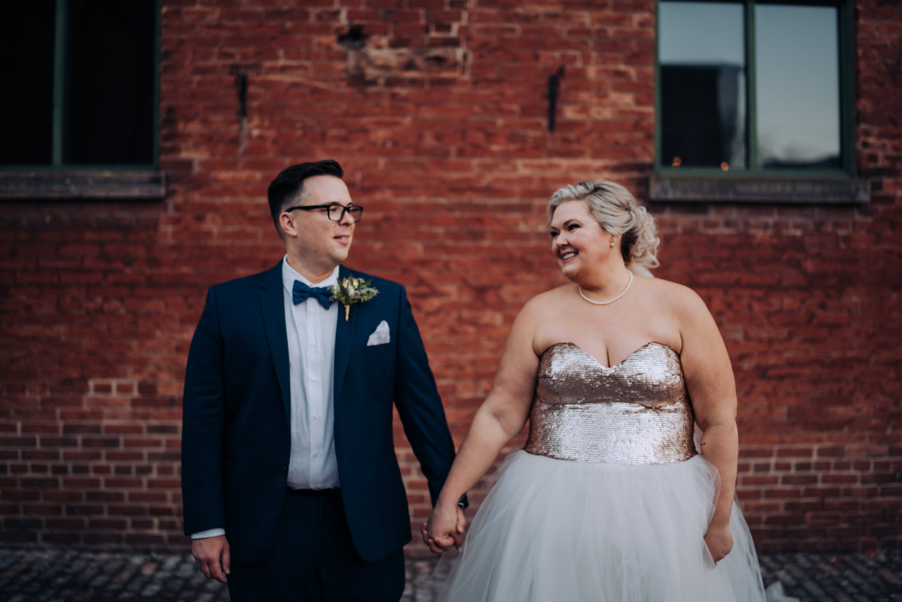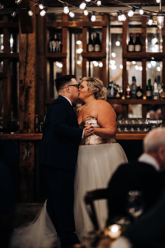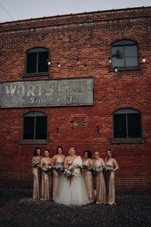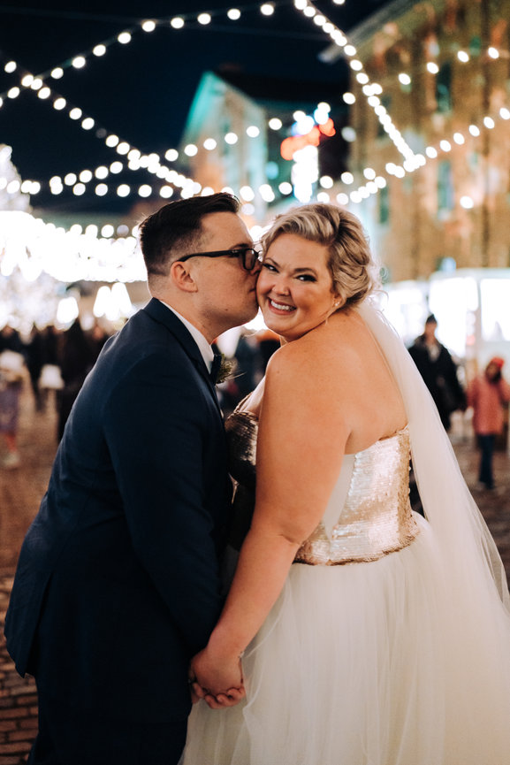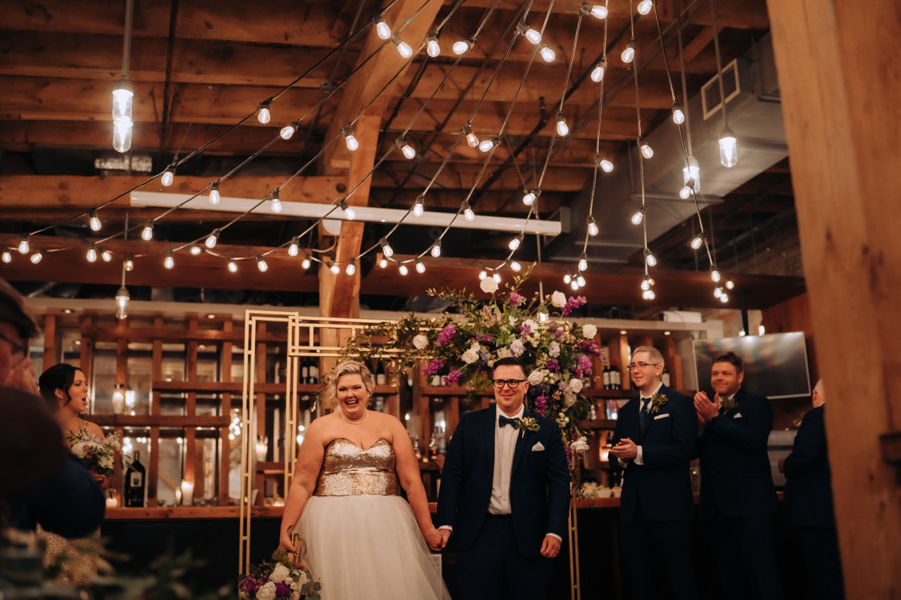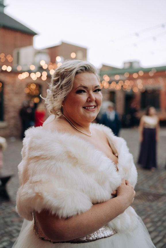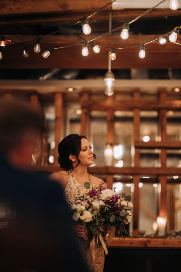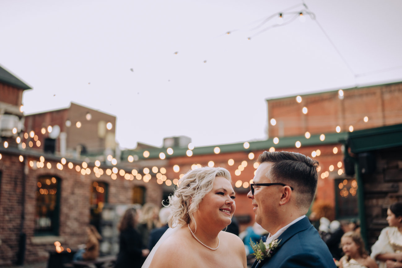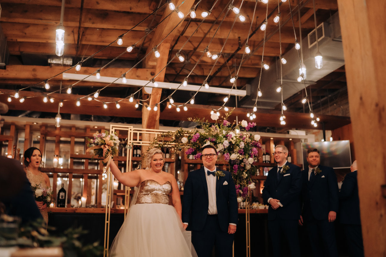 Torontos Distillery district hosts the chic Archeo restaurant and wedding event space. Inside an intimate evening wedding with romantic lighting and beautiful ambiance awaits. Outside a bustling city with voices and lights, hot chocolate and christmas music that fills the night. Here in the middle of the Toronto Christmas market surrounded by their friends and family and in the midsts of thousands of Holiday shoppers, stood two madly in love humans getting married and celebrating their love.