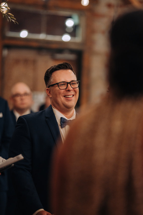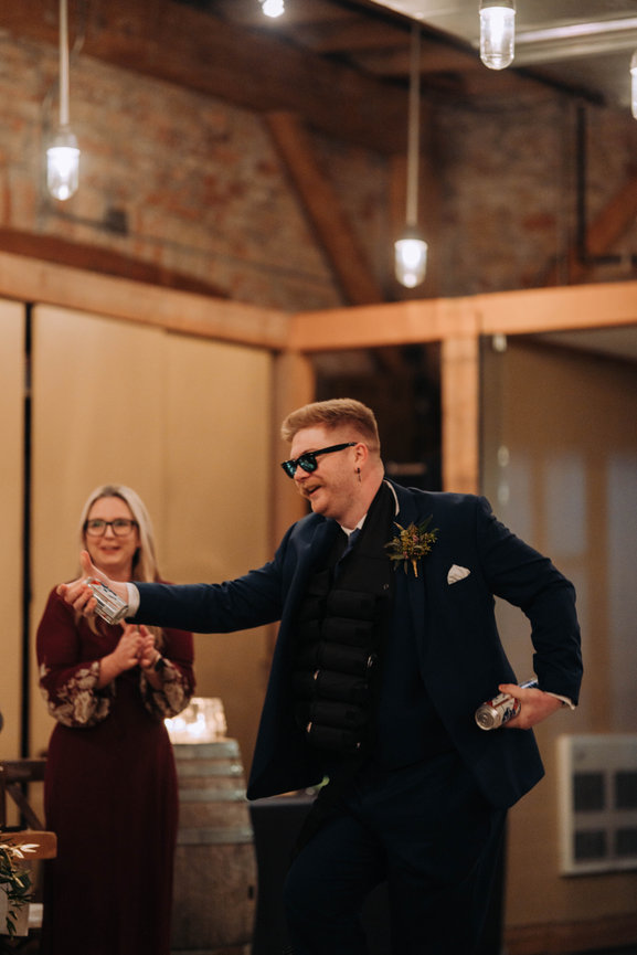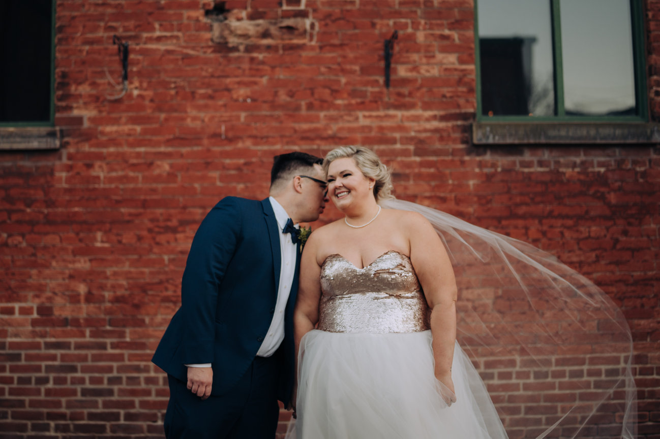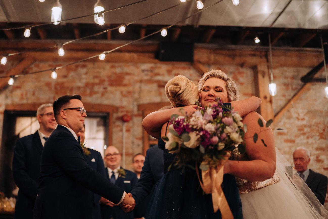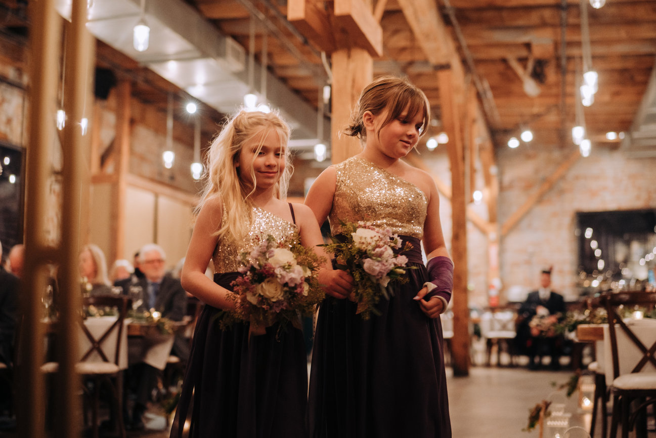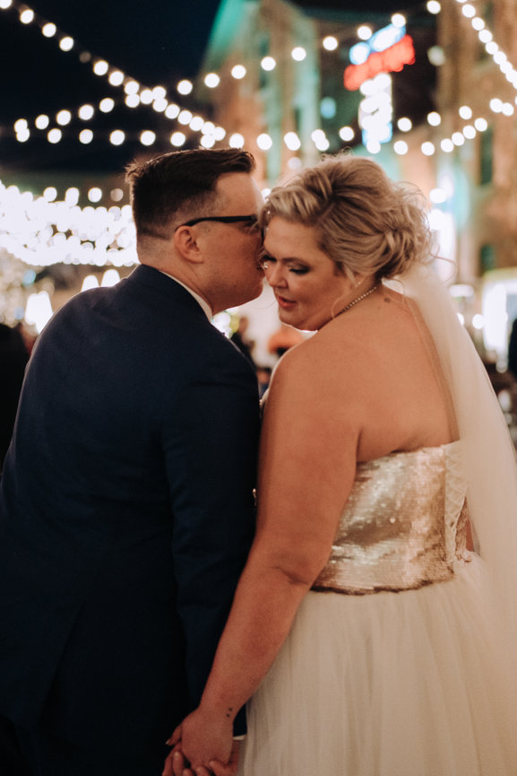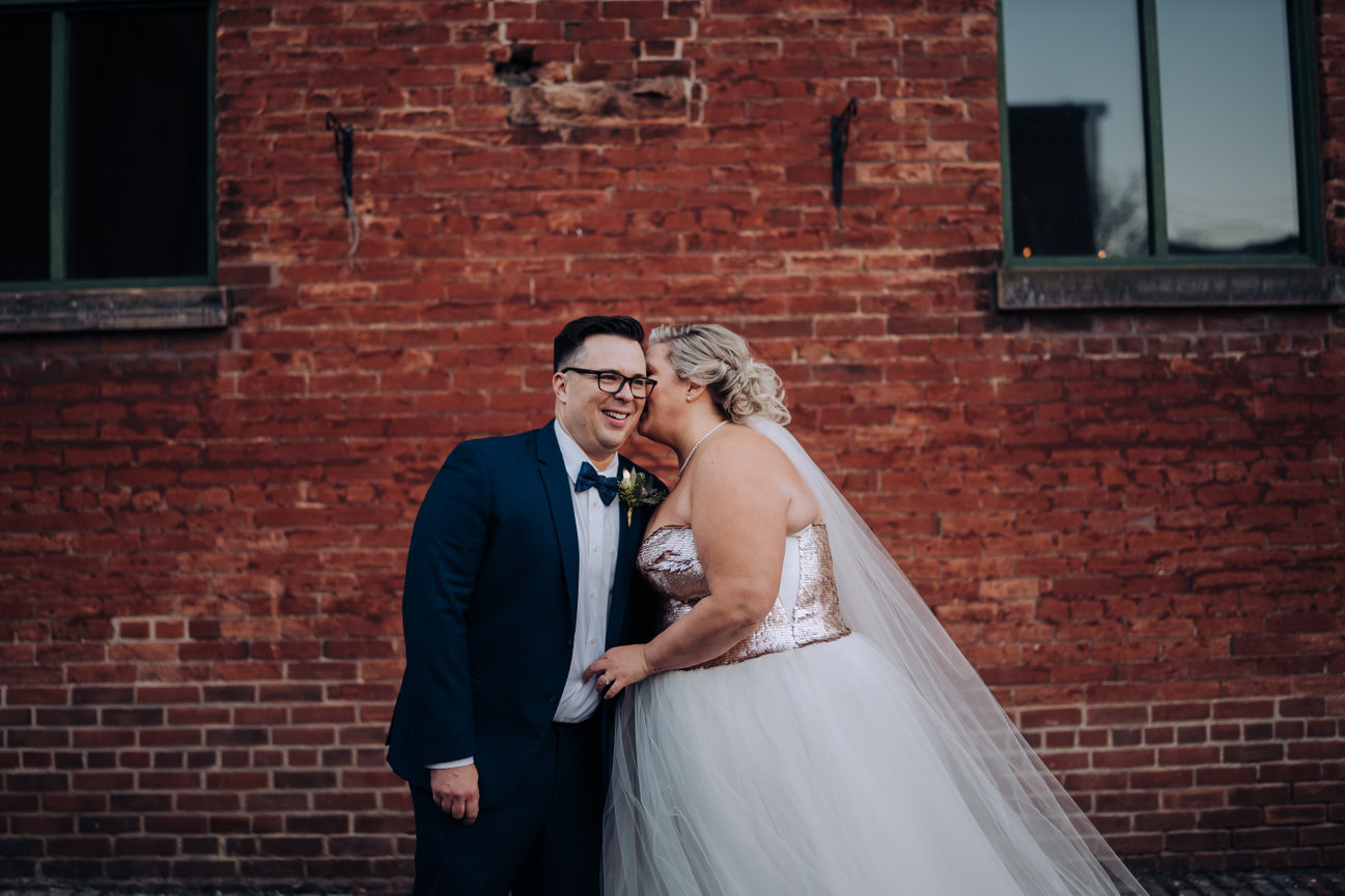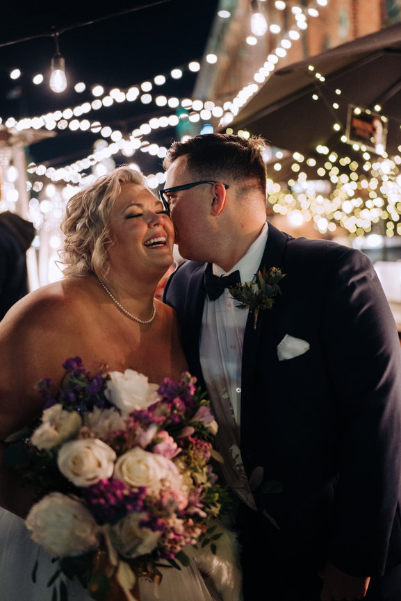 Torontos Distillery district hosts the chic Archeo restaurant and wedding event space. Inside an intimate evening wedding with romantic lighting and beautiful ambiance awaits. Outside a bustling city with voices and lights, hot chocolate and christmas music that fills the night. Here in the middle of the Toronto Christmas market surrounded by their friends and family and in the midsts of thousands of Holiday shoppers, stood two madly in love humans getting married and celebrating their love.